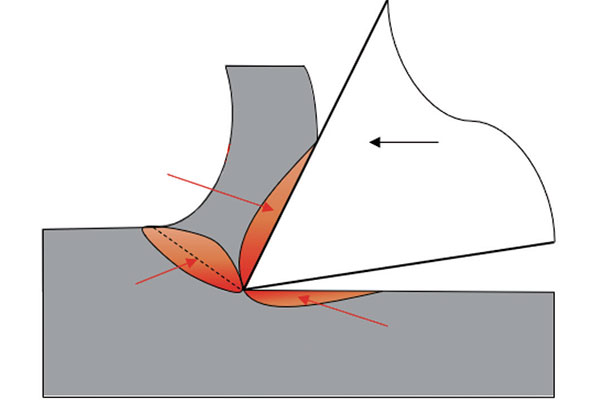 深入研究熱塑性碳纖維制品的切削加工原理,對于加快此類產(chǎn)品的商業(yè)化進程、促進熱塑性復合材料加工工藝的發(fā)展至關(guān)重要。在計算實際加工過程中的總產(chǎn)熱量時,簡單表示為Qtotal=Qplastic+Qrake+Qflank,其中Qplastic代表塑性變形產(chǎn)熱,Qrake表示刀屑摩擦產(chǎn)熱,Qflank表示刀具與工件摩擦產(chǎn)熱。加工過程中單位時間內(nèi)的總機械功可通過主切削力Fc與切削速度v的乘積得出,即W=Fcv。假設(shè)三個變形區(qū)消耗的摩擦功和變形功全部轉(zhuǎn)化為熱量,則Qtotal=W。當然,真實的計算遠不止如此簡單,還需考慮切削區(qū)熱分配比例系數(shù)以及熱塑性碳纖維制品內(nèi)部纖維方向等因素的影響。