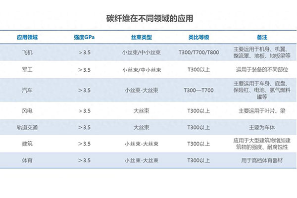 碳纖維被認(rèn)為是高性能纖維的杰出代表,以高比強(qiáng)度和高比模量而被認(rèn)可,同時(shí)還具有密度低、耐高溫、耐腐蝕、抗疲勞等一系列的優(yōu)勢(shì),因此發(fā)展迅猛成為替代金屬材料的首選材料。現(xiàn)如今的碳纖維已經(jīng)廣泛的應(yīng)用到航空航天、軌道交通、國(guó)防軍事、醫(yī)療器械以及海洋工程、風(fēng)力發(fā)電、體育休閑等多領(lǐng)域中,是國(guó)民經(jīng)濟(jì)和現(xiàn)代化國(guó)防的重點(diǎn)物資材料。